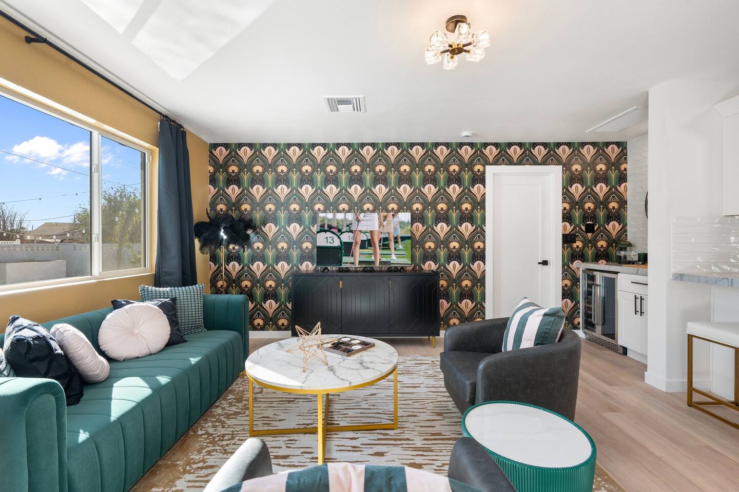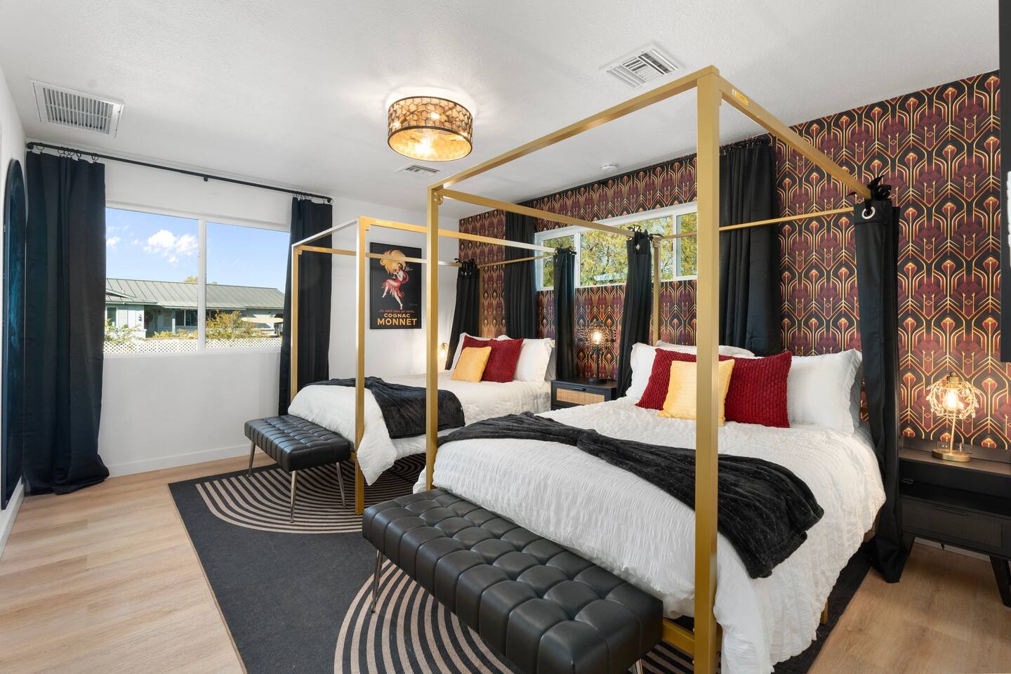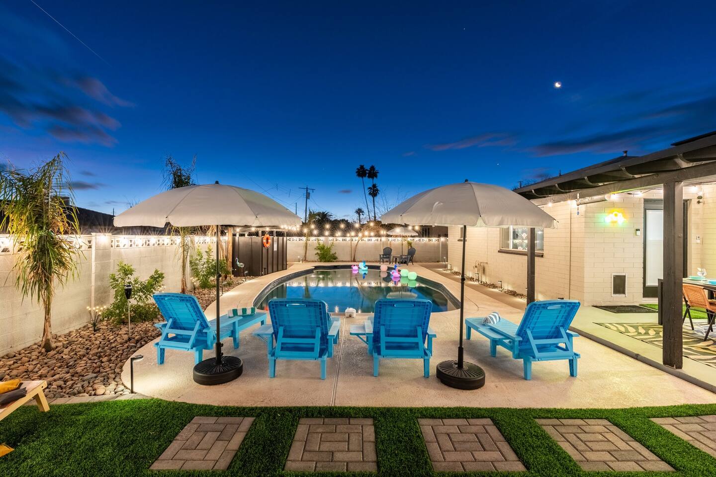 Step into a luxe Gatsby-themed escape with heated pool, hot tub, fire-lit evenings, and IG-worthy design. Relax in high-end comfort, play in the game room, and enjoy a resort vibe just minutes from Old Town Scottsdale’s winter events, dining, and nightlife. ⭐ “Beyond exceeded expectations—felt like a luxury hotel but way more fun!” 🌄 HIGHLIGHTS ✓ Luxe speakeasy design & IG-worthy details ✓ Heated/cooled pool, hot tub & lit backyard ✓ Game room, surprises & hotel-level comfort