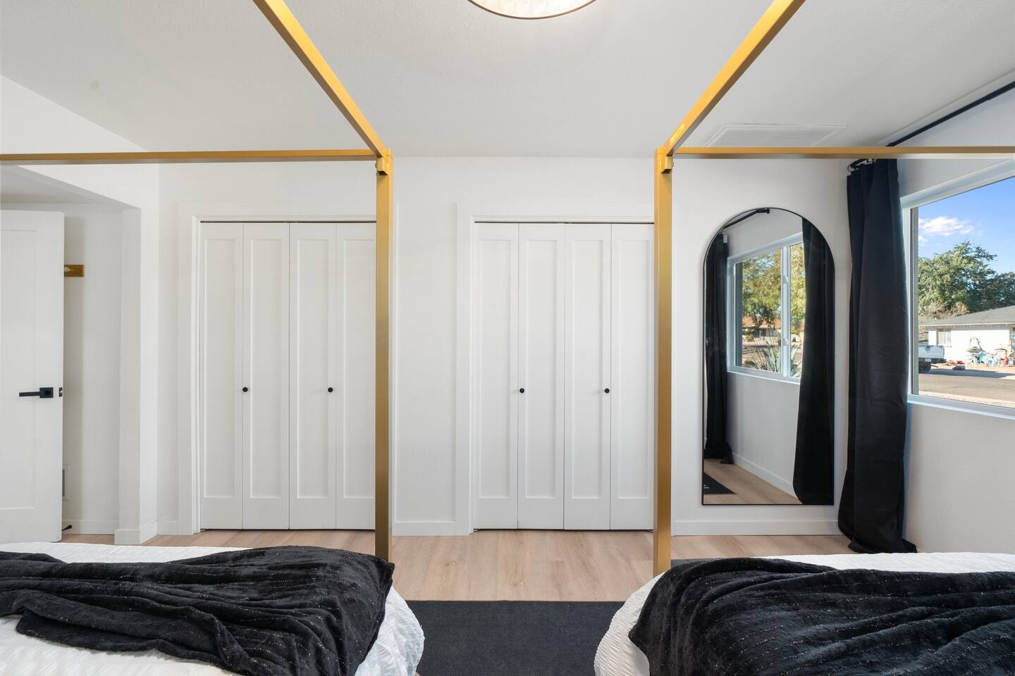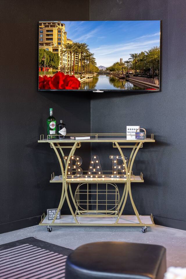 A Gatsby-themed escape with a heated pool, hot tub, game room, and IG-worthy design! 🏷 Main Floor Kitchen & Dining Room ∙ FULLY stocked kitchen w/plenty of counterspace for at-home baking and cooking ∙ Elegant, KEUREG coffee maker, tea kettle,blender and toaster ∙ Cooking oils and seasoning essentials ∙ Abundance of dishware, glassware and silverware, including children’s ∙ Full-sized fridge and freezer ∙ Gas range and oven ∙ Microwave ∙ Dishwasher ∙ Dining room table, seating for 6 ∙ Breakfast bar, seating for 3 ∙ Room-darkening shades ∙ Vintage turntable for music while dining or relaxing Living Room #1 ∙ Smart TV ∙ Netflix, Prime Video, Disney Plus, Hulu, HBO and more ∙ Sound system ∙ Room darkening shades ∙ Comfortable velvet and leather seating throughout the living area ∙ Coffee table ∙ Indoor fireplace ∙ Board games ∙ Books ∙ Expansive glass windows that brighten the home with abundant natural light Living Room #2 ∙ Smart TV ∙ Netflix, Prime Video, Disney Plus, Hulu, HBO and more ∙ Sound system ∙ Room darkening shades ∙ Comfortable velvet and leather seating throughout the living area ∙ Coffee table ∙ Board games ∙ Books ∙ Wine fridge ∙ Expansive glass windows that brighten the home with abundant natural light Bedroom #1 ∙ King size bed (additional floor mattress stored away if needed) ∙ Premium mattress and comforter ∙ Smart TV ∙ Room darkening shades ∙ Bedside table and lamp ∙ Bedroom stool Bedroom #2 ∙ 2 Double beds ∙ Premium mattress and comforter ∙ Smart TV ∙ Room darkening shades ∙ Bedside table and lamp ∙ Ceiling fan ∙ Bedroom bench ∙ Full-length mirror Bedroom #3 ∙ Queen size bed (additional floor mattress stored away if needed) ∙ Premium mattress and comforter ∙ Smart TV ∙ Room darkening shades ∙ Bedside table and lamp ∙ Ceiling fan ∙ Closet w/ hangers ∙ Bedroom bench ∙ Full-length mirror Bathroom #1 (Ensuite) ∙ Shower ∙ Single vanity and mirror ∙ Shampoo, conditioner and body soap ∙ Makeup washcloth Bedroom #4 ∙ Double bed ∙ Premium mattress and comforter ∙ Smart TV ∙ Room darkening shades ∙ Bedside table and lamp ∙ Ceiling fan ∙ Closet w/ hangers ∙ Bedroom bench ∙ Small dining table, seating for 2 ∙ Private entrance ∙ Full-length mirror Bathroom #2 ∙ Shower ∙ Dual vanity and large mirror w/ plenty of counter space ∙ Shampoo, conditioner and body soap ∙ Makeup washcloth Laundry Room ∙ LG washer/dryer ∙ Tide Free and Gentle ∙ Open shelving stocked with fresh pool towels for easy access Entertainment/Game Room ∙ Smart TV ∙ Poker table and chairs ∙ Popcorn machine ∙ Comfortable velvet and leather seating ∙ Electric fireplace ∙ Shuffleboard ∙ Board games 🏷 Outdoor Space(s) Patio ∙ Hot tub ∙ Outdoor dining, seating for 10 ∙ Modern fire table and seating ∙ Surrounded by string lights that create a cozy, inviting glow at night Pool area ∙ Sun loungers ∙ Umbrellas ∙ Glowing floating orbs ∙ More seating on the pool side Backyard ∙ Bocce Ball ∙ Cornhole 🏷 Parking ∙ Free driveway parking, up to 4 vehicles ∙ Additional free street parking 🚘 Nearby ∙ Old Town Scottsdale (5 min): Walkable downtown area with galleries, craft coffee spots, boutique shops, lively dining & nightlife. ∙ Scottsdale Fashion Square (6 min): Upscale shopping mall with luxury brands, dining, and convenient access for guests wanting high-end retail therapy. ∙ McCormick-Stillman Railroad Park (7 min): Family-friendly park with a miniature train, playgrounds and green space—great for relaxed outings. ∙ Western Spirit: Scottsdale’s Museum of the West (7 min): Cultural museum showcasing the art and heritage of the American West—good for guests seeking an elegant yet local experience. ∙ Scottsdale Stadium (8 min): Iconic Spring Training baseball stadium and venue for events—perfect for guests attending sports or looking for lively evenings. ∙ Papago Park Trails (8 min): Easy desert trails, iconic “Hole-in-the-Rock” viewpoint and nature paths inside the city for guest outdoor activity. ∙ Musical Instrument Museum (15 min): Unique museum featuring musical instruments from around the world—ideal for culture-seeking guests. ∙ Butterfly Wonderland (15 min): Indoor rainforest-style attraction with butterflies and immersive exhibits—good for families or those escaping the heat. ∙ OdySea Aquarium (15 min): Large modern aquarium offering climate-controlled family fun and something different for group outings. ∙ Desert Botanical Garden (17 min): Beautiful gardens featuring desert flora and scenic trails—great for photo-friendly guests and nature lovers. ∙ Camelback Mountain (20 min): Iconic hiking destination with panoramic city and valley views—ideal for active guests looking for a memorable outdoor experience. ∙ Kierland Commons (20 min): Trendy outdoor shopping and dining district with cafés and bars—perfect for a relaxed afternoon or evening out. ∙ Scottsdale Quarter (22 min): Outdoor shopping and dining area with restaurants, trendy cafés and nightlife—good for social groups. ∙ Pinnacle Peak Park (25 min): Nature park offering moderate hikes and stunning desert scenery—great for nature-loving guests. ∙ Paradise Valley Resort Area (30 min): Luxury resort zone with upscale dining, spa experiences and mountain views—ideal for a splurge outing. ∙ Sedona Day Trip (120 min): Stunning red-rock landscape accessible for a full-day adventure—great for guests staying multiple days. ∙ Flagstaff / Northern Arizona (140 min): Extended outing destination for guests wanting a larger nature escape beyond Scottsdale. ∙ Grand Canyon South Rim (180 min): Iconic national landmark reachable for full-day or overnight trip—adds major appeal for longer stays. ∙ Scottsdale Canal & Public Art Walk (22 min): Scenic canal path with public art installations, cafés and leisurely